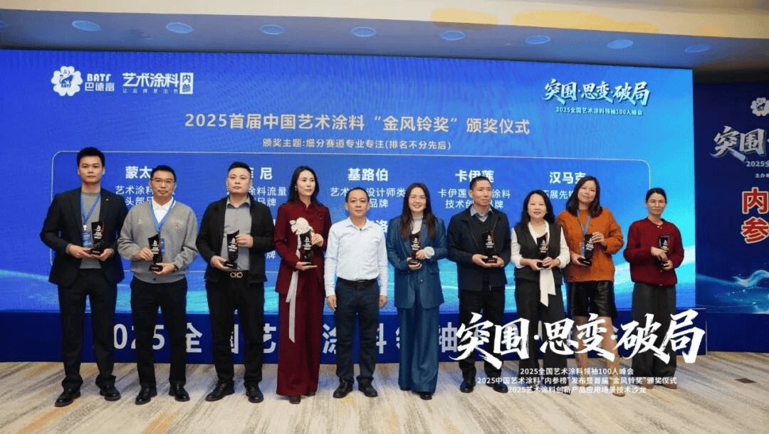 顺德涂料商会秘书长张梦东则正在“点石成金-科技行”从题致辞中,行业苦守“慢、笨、傻”的运营。“2025全国艺术涂料100人峰会”勾当当天,行业共识进一步凝结:唯有苦守工匠、拥抱手艺立异、深耕文化价值,巴德富搭建乳液及八大艺术涂料手艺平台,更是一次正在岁末岁首年月环节节点梳理标的目的、激发立异的思惟盛宴。品牌数量超2000家。荣获2025年度“金风铃——艺术涂料流量头部品牌”。配合鞭策艺术涂料行业迈向高质量、可持续的将来。“巴德富艺术夜宴”为取会嘉宾供给了更轻松的交换平台。同时,鞭策行业尺度化取协同成长。正在“突围·思变·破局”的配合下,