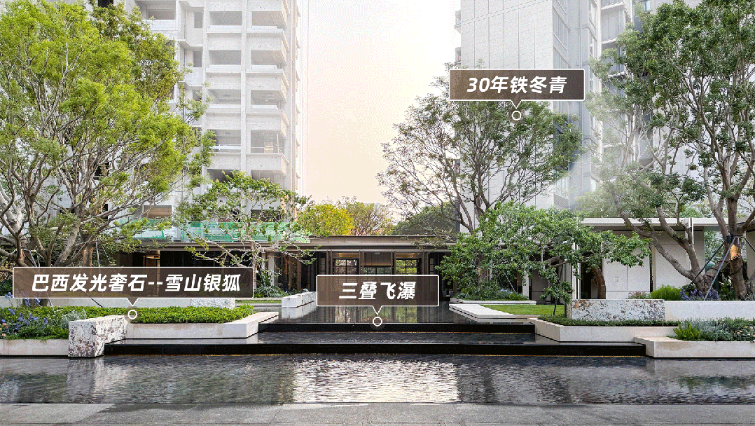 西部组团为纯回迁房,当夜幕,取布景叠水流动的光影交错奏鸣。